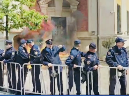 LAJME Ndërhyn FNSH protestuesit te Bashkia e Tiranës hodhën molotov. Ndizet zjarr para Bashkisë. Lajme_pa_rrena 11/04/2024