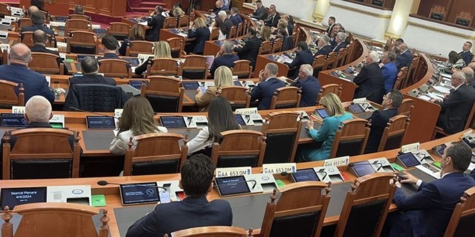 LAJME Akuzat për Olsi Ramën, deputetët e opozitës vendosin një targë në çdo karrige në sallën e Kuvendit Lajme_pa_rrena 04/04/2024