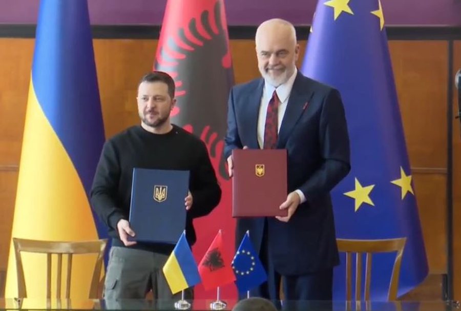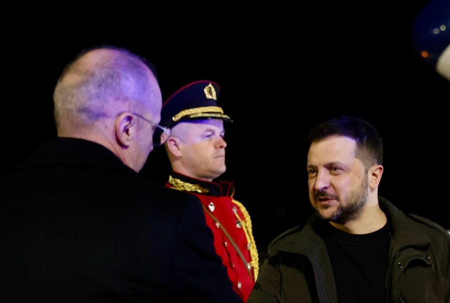 LAJME Mberrin ne Tirane ukrainas Zelensky, e pret ne Rinas Ministri i Jashtem Hasani Lajme_pa_rrena 27/02/2024
