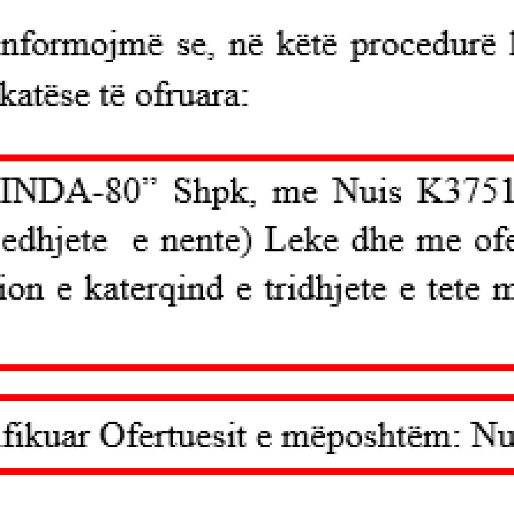 Oferta e saj është në vlerën 59,438,061 lekë të reja pa TVSH ose gati 700 milionë lekë të vjetra me TVSH. Kjo kompani duke qenë edhe e vetmja pjesëmarrëse, nuk e ka patur aspak të vështirë të shpallej fituese e tenderit.